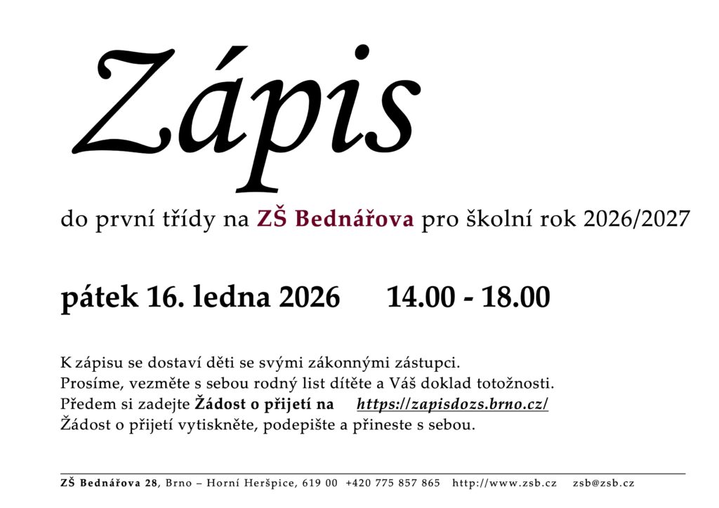 Zápis dětí do 1. třídy pro školní rok 2026/2027